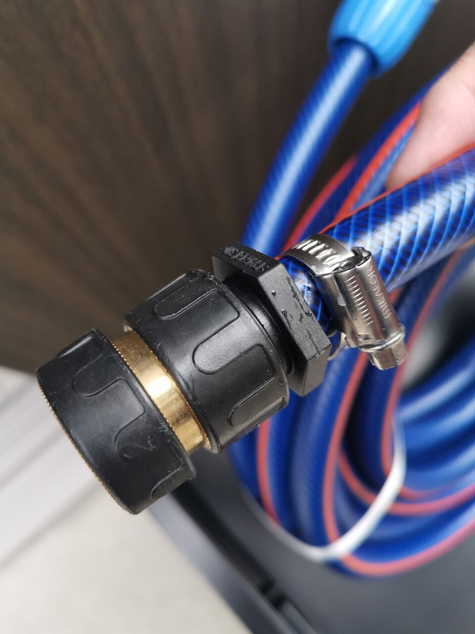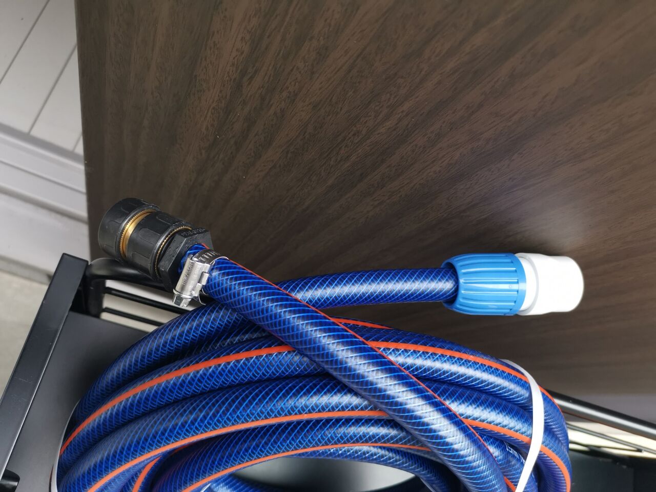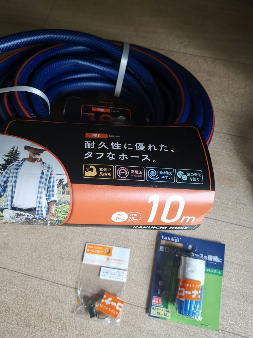 2階ベランダの高圧洗浄機による掃除は水源が無いのでこれに決めたが、いかんせんタンクの水が無くなるのが早くて一階駐車場や、庭に使うのは立水栓への往復で手間が掛かる。