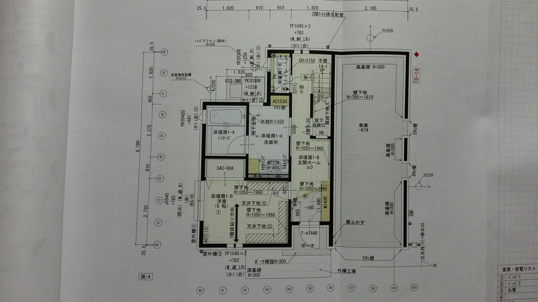 まずは最初の設計図面はこんな感じでした。まずは一階。