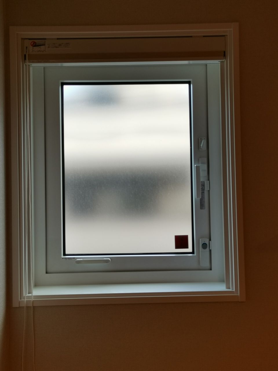ハニカムシェードを開けられないストレスを解消しようと考えたのが、ガラスフィルムを貼ってくもりガラス風に出来ないか?自分で貼る事も出来るが仕上りに不安がある。